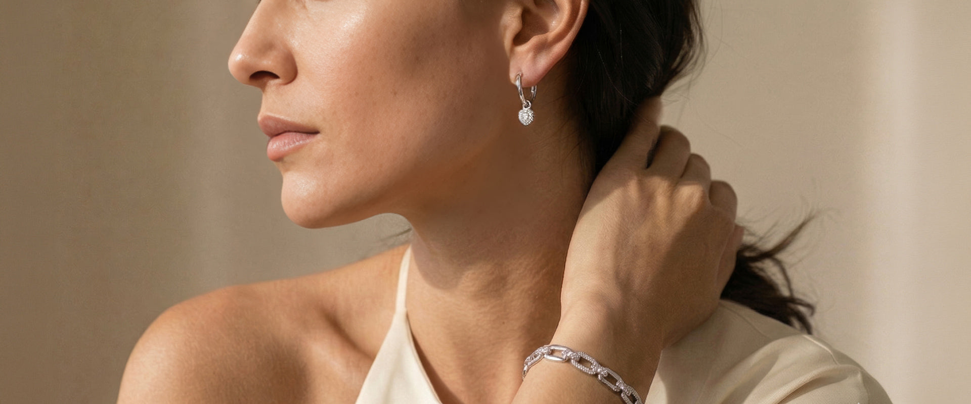 Delicate Multi-Heart Link Station Bracelet - Silver