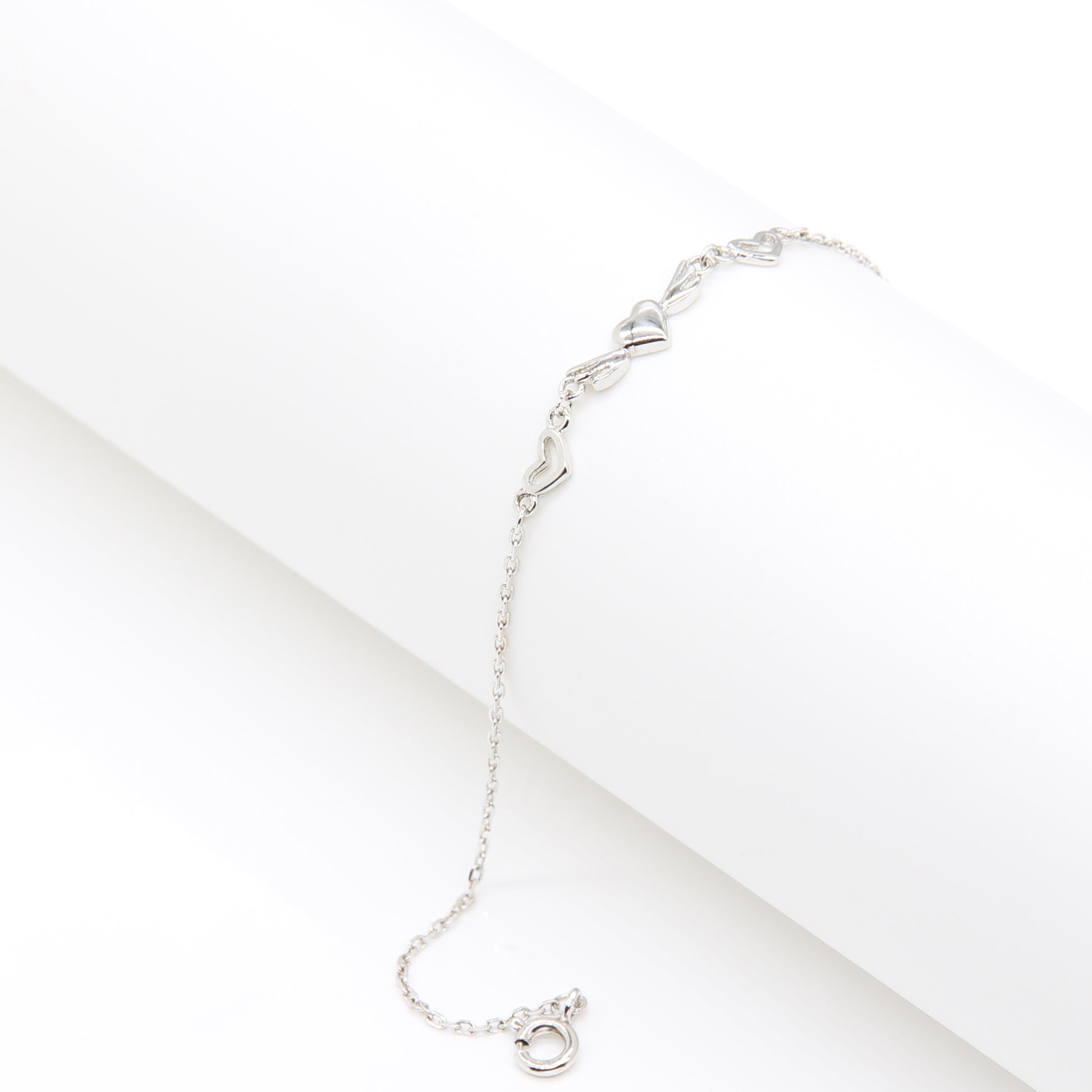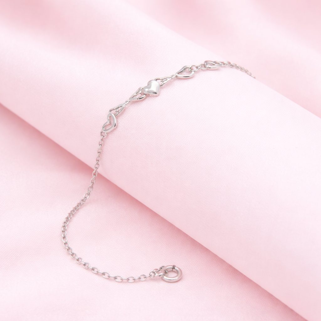 Delicate Multi-Heart Link Station Bracelet - Silver